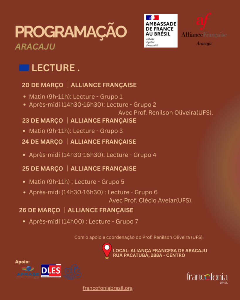 20/03 – 27.03 | Na Aliança Francesa de Aracaju